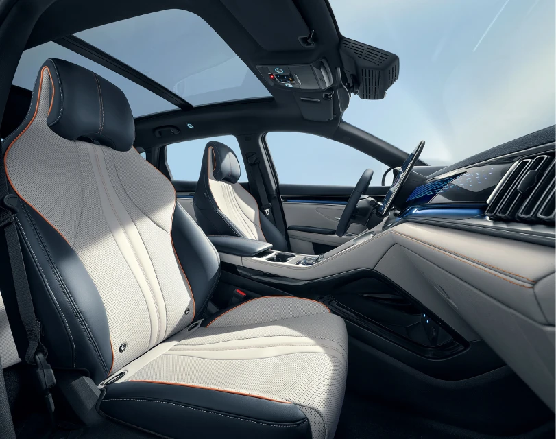 Zintegrowane siedzenia BYD SEAL U zaprojektowano z myślą o długich podróżach. Przednie fotele oferują: elektryczną regulację, podgrzewanie i wentylację, funkcję pamięci ustawień. Pozwala to szybko dopasować pozycję do preferencji kierowcy i pasażera, zapewniając wygodę niezależnie od długości trasy.