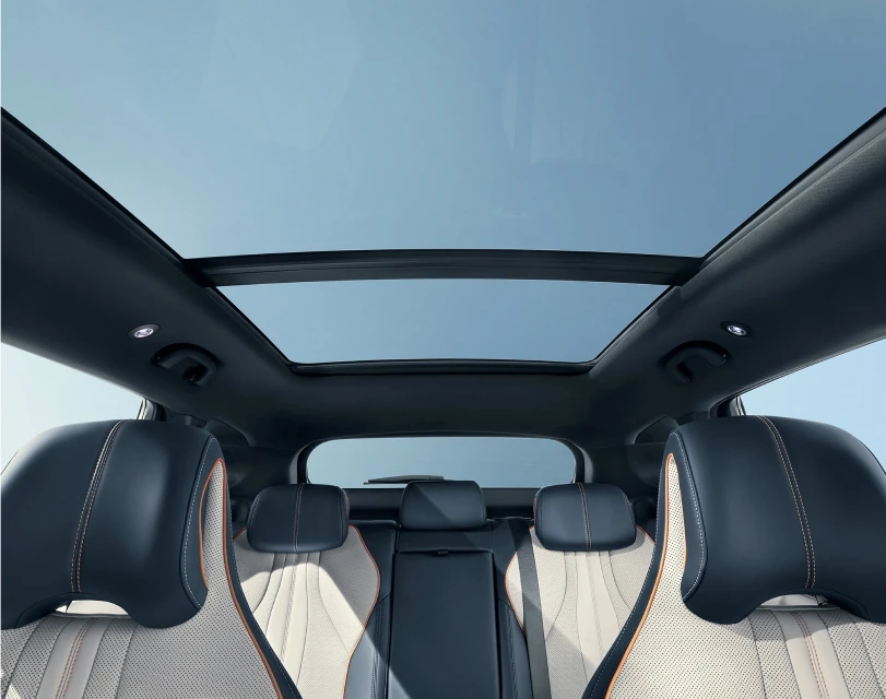 Duży, przeszklony dach panoramiczny z funkcją odsuwania wprowadza do kabiny mnóstwo naturalnego światła i zapewnia poczucie przestrzeni. Możesz cieszyć się widokiem bezchmurnego nieba w dzień i gwiazd nocą, a w ciepłe dni uchylić szybę, by wpuścić świeże powietrze.