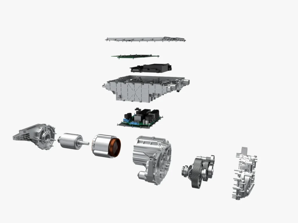 BYD korzysta z pionowej integracji produkcji, dzięki czemu może łączyć osiem kluczowych komponentów w jeden moduł napędowy 8 w 1. W skład systemu wchodzą m.in.: